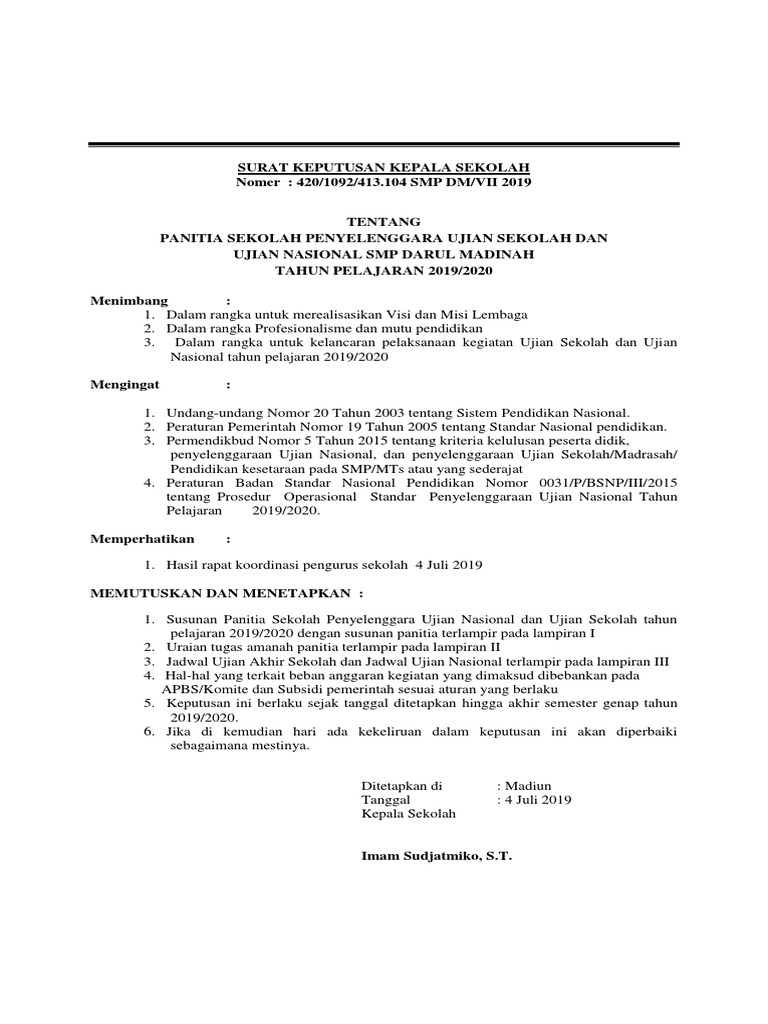 Contoh sk panitia ujian sekolah sd smp sma tahun 2021 22 mar 2021.