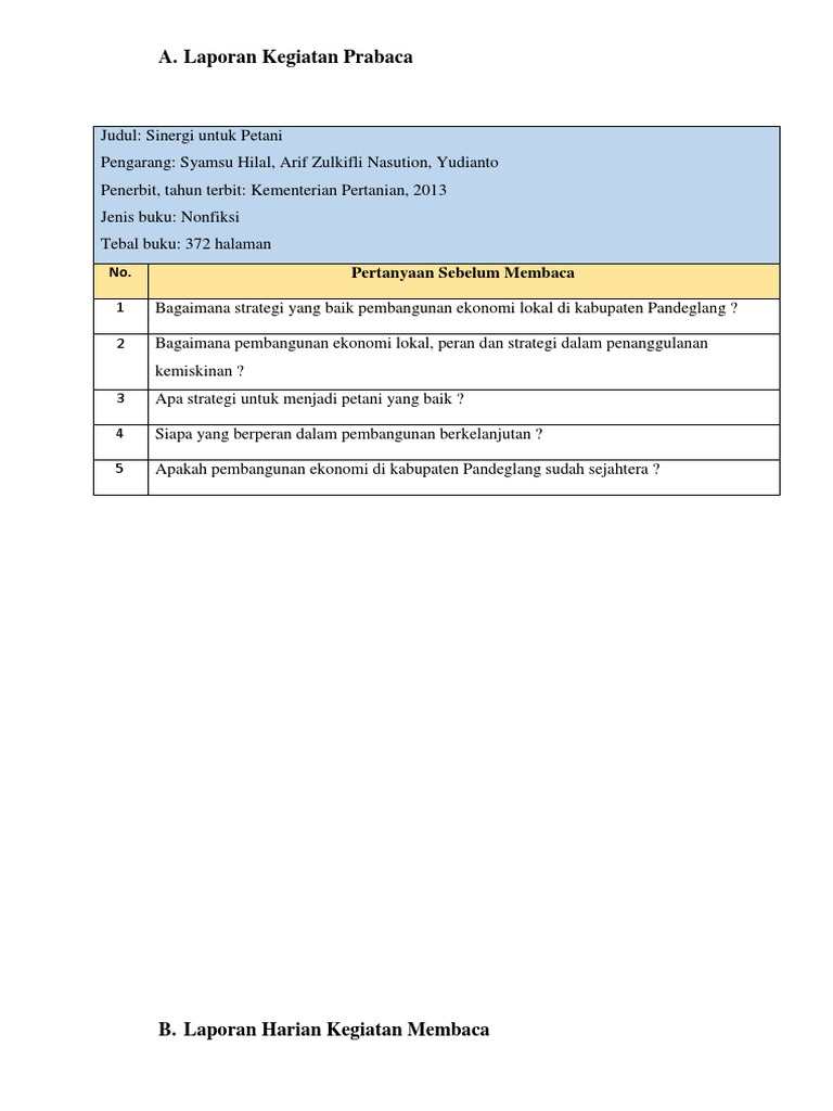 Laporan Kegiatan Membaca : Laporan Kegiatan Membaca Buku : Nah, laporan yang lengkap, bisa ditambah lokasi halaman di halaman berapa sampai berapa dan masuk di bab berapa.. Jika kamu sudah selesai membaca buku, susunlah laporan kegiatan tersebut dalam buku rekaman tertulis kegiatan membaca. Admin blog kumpulan contoh laporan 2019 juga mengumpulkan gambar gambar lainnya terkait contoh laporan harian kegiatan membaca buku fiksi singkat dibawah ini. Doc laporan kegiatan prabaca yona puspa academia edu tugas literasi b indonesia laporan kegiatan membaca buku contoh laporan harian kegiatan membaca novel laskar. Admin blog seputar laporan 2019 juga mengumpulkan gambar gambar lainnya terkait contoh laporan kegiatan membaca novel dibawah ini. Kemudian buatlah pertanyaan yang ingin kamu peroleh jawabannya dari buku yang akan kamu baca tersebut.