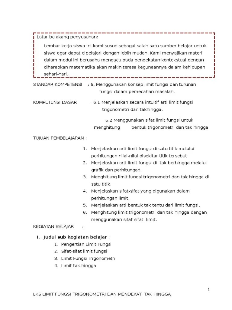 Setiap soal telah disertai pembahasan super lengkap yang disajikan secara rapi menggunakan latex. Limit di tak hingga merupakan kajian yang tepat untuk mengetahui kecendrungan suatu fungsi jika nilai variabelnya dibuat semakin besar. Salah satunya adalah limit tak hingga yang akan dibahas pada artikel kali ini. Yuk, mari simak penjelasan berikut! Kali ini edmodo akan menyampaikan sebuah . Penyelesaian limit tak hingga bentuk akar sebenarnya menggunakan cara menyelesaikan limit dengan kali akar sekawan, itu kalau cara manualnya . Di dalam pembahasan limit, seringkali kita mencari nilai limit saat x menuju tak hingga atau x menuju. Tentukan penyelesaian limit tak hingga berikut ! Sehingga, bermunculan ide untuk menemukan rumus trik cepat mengerjakan limit tak . Kali ini, rumushitung akan membahas materi limit tak hingga dalam bentuk fungsi aljabar. Penyelesaian soal limit secara runut akan memakan banyak waktu. Penyelesaian limit tak hingga bentuk akar . 3x 2 4 x 1 3x 2 4 x 1 1.
