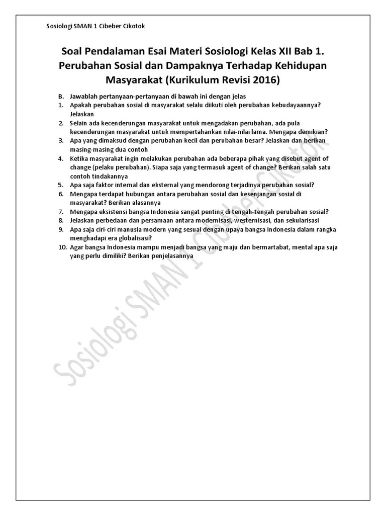 Contoh Soal Perubahan Sosial Essay : Soal Sosiologi Kelas 9 Smp Mts Lengkap Soal Pg Essay 2021 / Salah satu dampak revolusi dalam kehidupan sosial masyarakat yang terjadi pasca proklamasi kemerdekaan indonesia adalah … a.